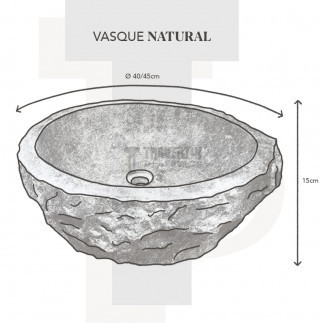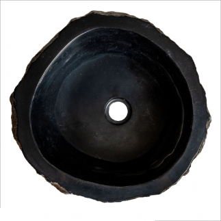 Vasque natural marbre noir, intérieur poli et extérieur brut, D.40/45 x H.15 cm